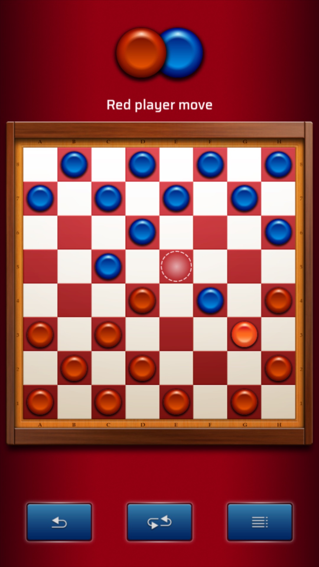The classic and very simple board game everyone knows from their childhood. It comes in many variants, so the game provides rules settings. You can play against the simple AI or you can use this app to play against a friend on the same device. Move your stones diagonally forward and capture opponent stones by jumping over them.